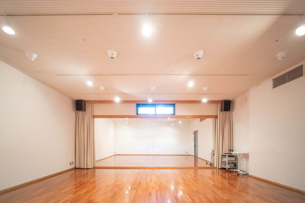 スタジオリズムーン は、ダンス練習、楽器演奏、芝居稽古から、小規模イベントまで様々な目的でご利用いただけます。素足に心地よい、木質のダンスフロア、防音および音響を考えた室内、音響設備・高速光回線も完備。