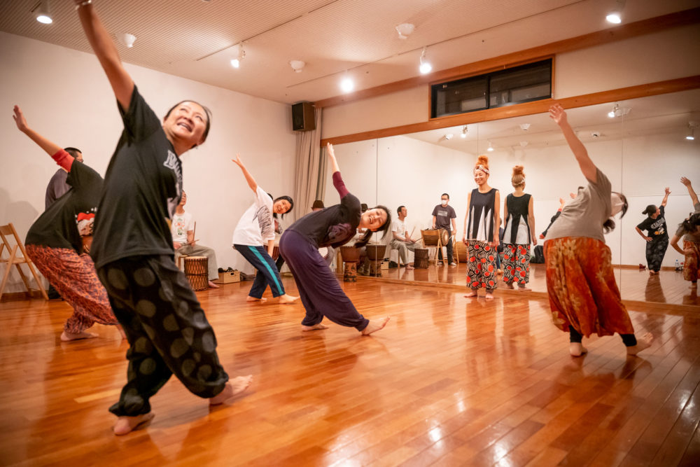 「タイコ演奏に合わせて、裸足で気持ちよく踊れるスタジオ」を目指し、防音完備に加え、裸足で踊っても体への負担の少ないクッション性の高い床材を使っています。
